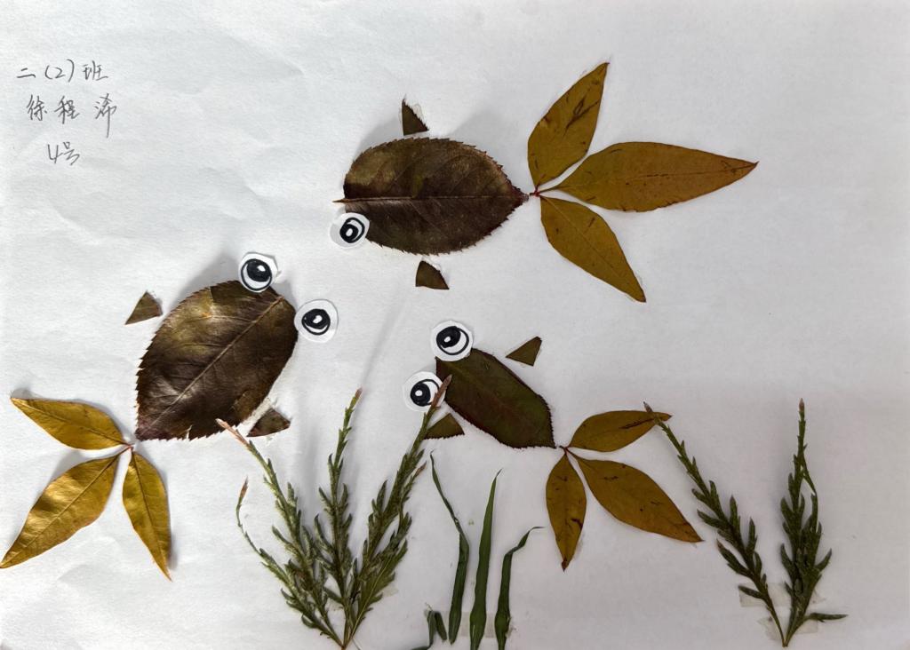 落叶成了“数学玩具”!数学组布置创意落叶贴画作业,让孩子在拼贴中感知图形组合,探索数学与自然的联系。孩子们用落叶拼出几何图形、数字故事,每幅作品都藏着数学巧思。这个暑假,数学在自然里“玩”出乐趣,快来赏这些创意吧!