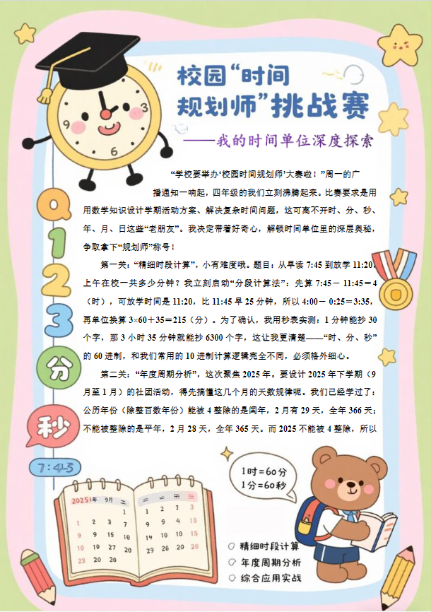 数学,是一个色彩缤纷的万花筒,美丽而奇妙。它不仅是课本上的公式与符号,更是生活中无处不在的智慧之光。孩子们用灵巧的双手和敏锐的观察力,将数学知识与生活探索完美融合。他们以图文并茂的手抄报为画布,记录下一个个有趣的发现:对称的树叶、重复的图案、巧妙的测量……这份特殊的作业,既是探索之旅,更是一场趣味十足的数学盛宴!