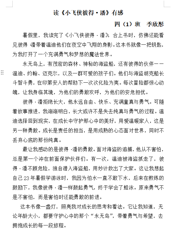 书香伴暑假,阅读润成长。同学们“读”得认真、仔细、动情,“感”得真切、具体、深刻,用心、用情写下了《中国民间故事》、《非洲民间故事》、《童年》、《夏日历险》等读后感,作品中既有中华的传统文化,也有着外国的古典名著和民间故事,一篇篇读后感,既是中华传统文化的薪火相传,亦是外国经典名著的智慧碰撞,展现了青少年学子广博的视野与丰盈的精神世界。