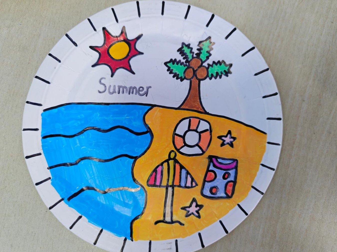 这个暑假,同学们的英语作业玩出了新花样——大家拿起彩笔、胶水和普通的纸盘,将学过的英语单词融入绘画,制作出一个个色彩鲜艳、创意十足的“单词纸盘画”,让英语学习变得生动又有趣。
