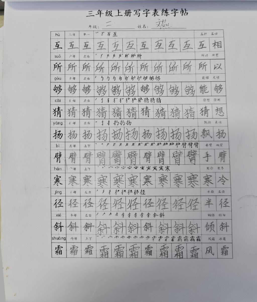 暑假期间,同学们的语文练字作业成为了一道别样的风景线。大家铺展练习纸、手握铅笔,在一笔一画的书写中,让汉字之美融入夏日时光,用认真态度为假期交出“工整答卷”。