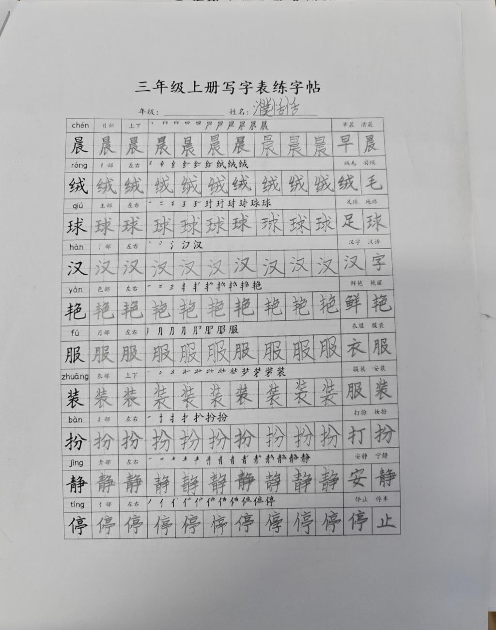 练字不仅让同学们的字迹更工整,更培养了专注力和耐心。不少同学表示,每天坚持练15分钟字,慢慢发现自己写作业时更认真了;家长们也说,看着孩子一笔一划认真书写的样子,能明显感受到他们对学习的态度更端正了。小小的练字本,成了同学们暑期成长的“见证者”。