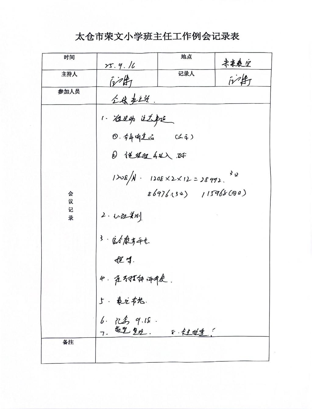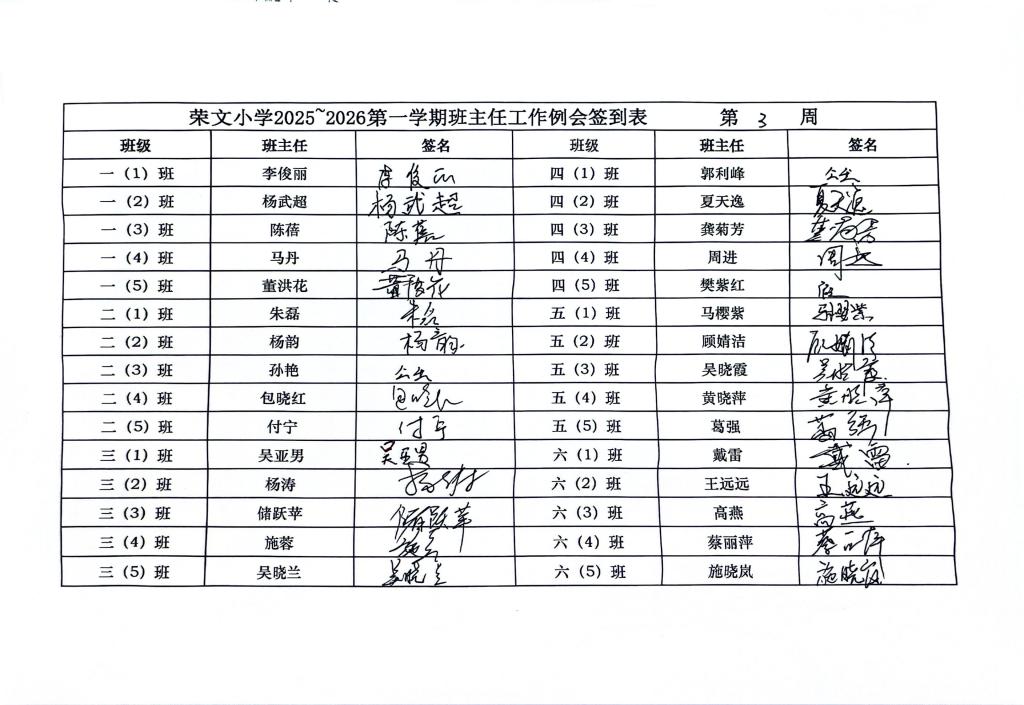 荣文小学2025—2026学年第一学期第3周班主任工作例会