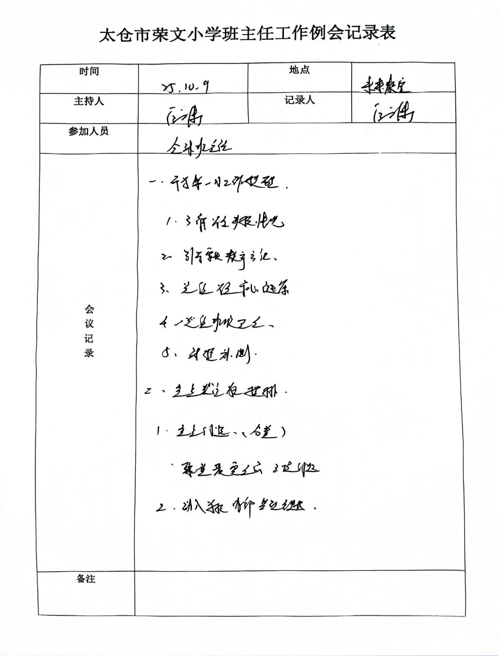 荣文小学2025—2026学年第一学期第5周班主任工作例会