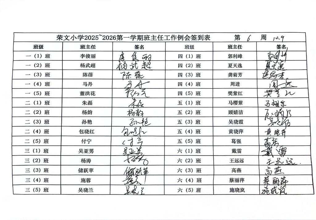 荣文小学2025—2026学年第一学期第6周班主任工作例会