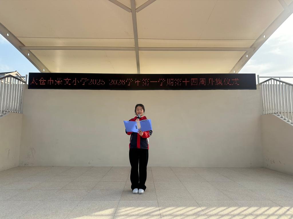 2025年12月1日(星期一)上午,太仓市荣文小学举行第十四周升旗仪式。通过升旗手风采展示、国旗下主题演讲等环节,引导学生学会重视粮食节约。