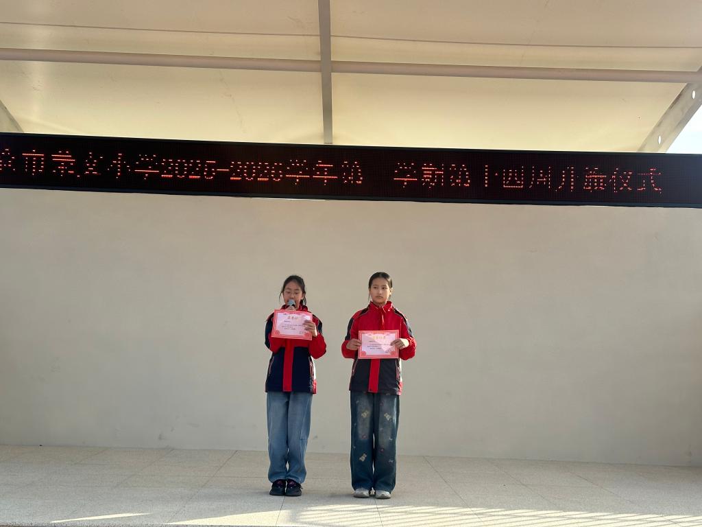 六(4)班 杨梓伊同学担任本次升旗仪式的小主持人,为大家介绍了六(4)中队