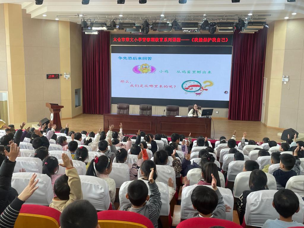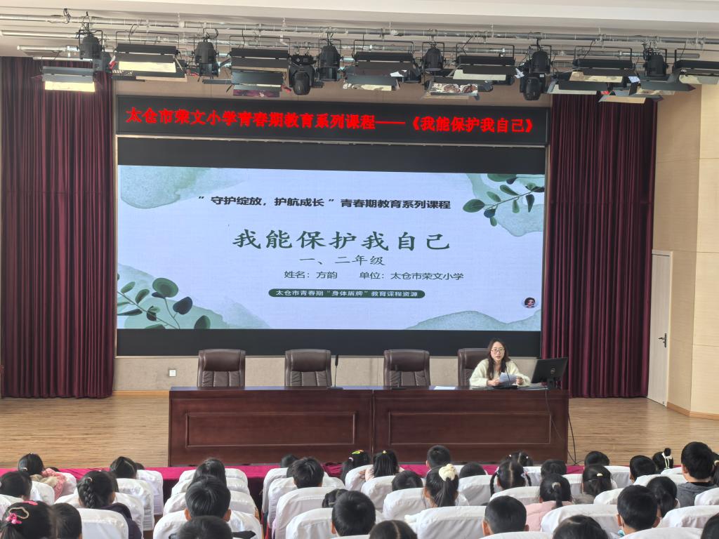 2025 年 12 月 9 日,太仓市荣文小学报告厅内氛围热烈,方韵老师为一年级学生带来了 “安全盾牌” 青春期教育课程。课堂以 “我能保护我自己” 为核心,通过趣味互动、情景体验等形式,让孩子们在轻松氛围中掌握自我保护知识,筑牢安全成长防线。