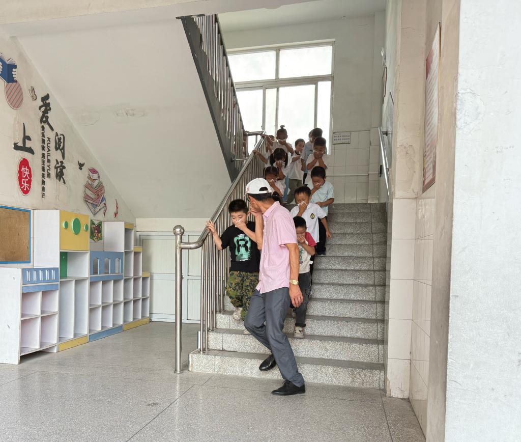 上午8时20分,随着急促的警报声响彻校园,演练正式拉开帷幕。各楼层负责教师迅速抵达指定岗位,沉着指挥。各班学生在班主任老师的带领下,用湿毛巾捂住口鼻,弯腰低姿,按照预定疏散路线,快速、有序地撤离教学楼。整个过程中,师生们反应敏捷、动作规范,短短3分15秒,全校千余名师生全部安全疏散至学校操场指定区域,整个过程紧张高效,井然有序。