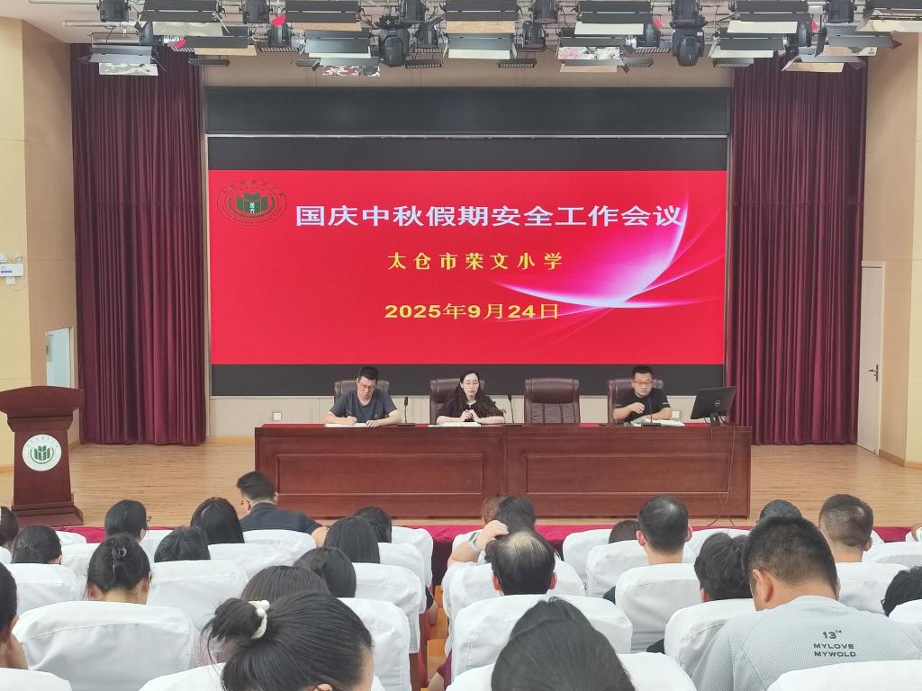 2025年9月24日荣文小学召开了国庆中秋双节前的安全工作专题会议。为确保双节8天小长假全校师生的安全,荣文小学在节前对全校师生员工进行了安全工作专题培训。学校先召开了安全工作领导小组会议,对双节前后的安全工作进行了部署。全体教师会议上,从防溺水安全、交通安全、消防安全、外出活动安全、居家安全、食品安全、心理安全、防欺凌安全、防范电信网络诈骗、防范恶劣天气引发自然灾害等多方面进行了培训,要求全体班主任根据培训内容和“1530”安全教育机制在双节前对全体学生展开安全专题教育。同时,要求全体教师在假期里除了防范自身安全外,更要注意师德形象,要以“新时代中小学教师职业行为十项准则”为标准,维护好良好的教师形象。